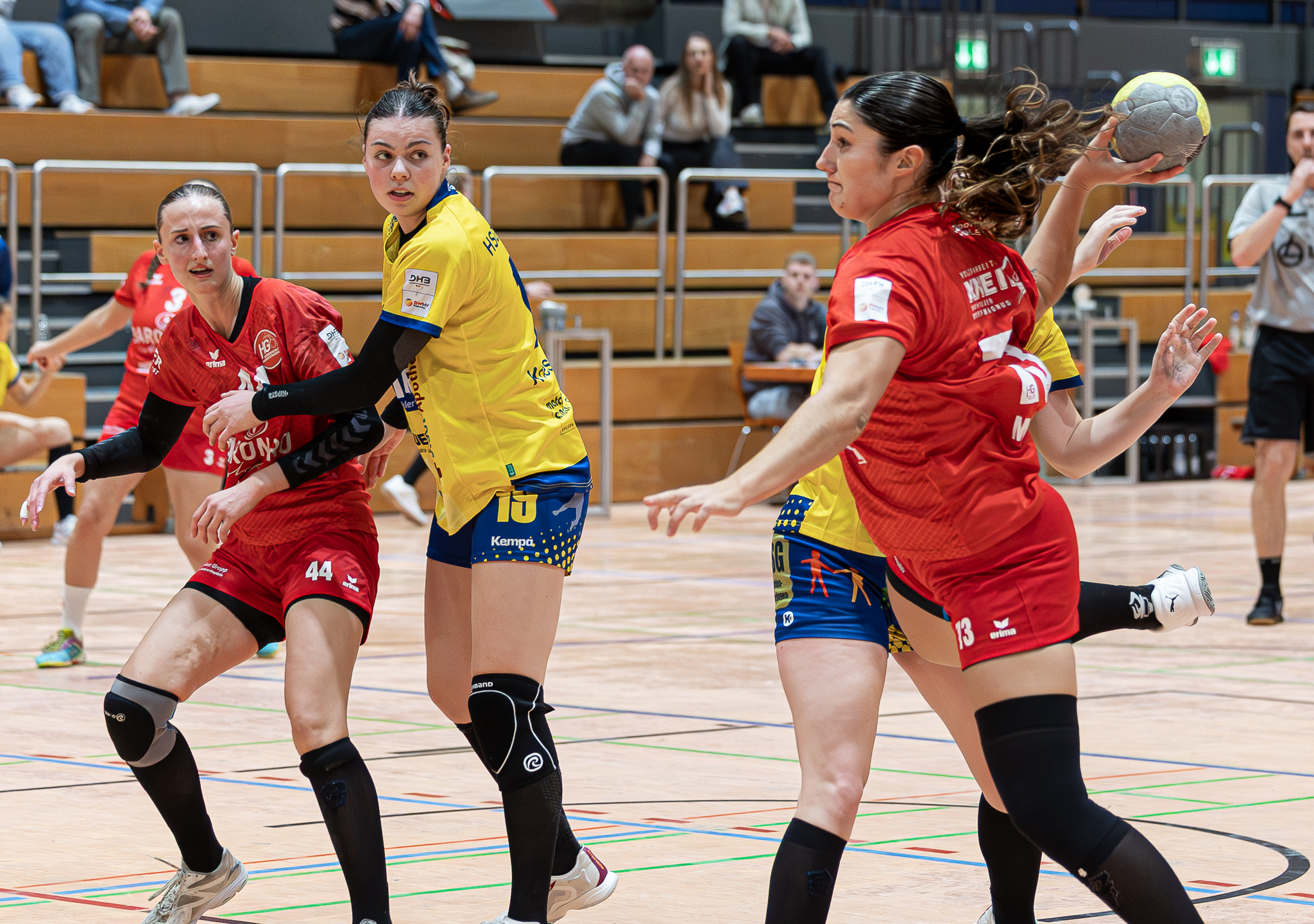 Die Kurpfälzerinnen hatten als kleinen Ersatz für ihre Ausfälle eine Überraschungspersonalie auf dem Spielberichtsbogen. Helena Bertele kehrte nach ihrem halbjährigen Ausflug zur HSG Bensheim/Auerbach zurück. Dafür war Britta Miltner im zweiten Durchgang gar nicht mehr einsatzfähig. „Sie hatte heftigen Bodenkontakt gehabt und das Knie schwoll deutlich an“, hatte Trainer Carsten Sender zu vermelden. „Davor hat sie sehr stark gespielt. Aber ohne Verletzung geht es bei uns scheinbar nicht.“
