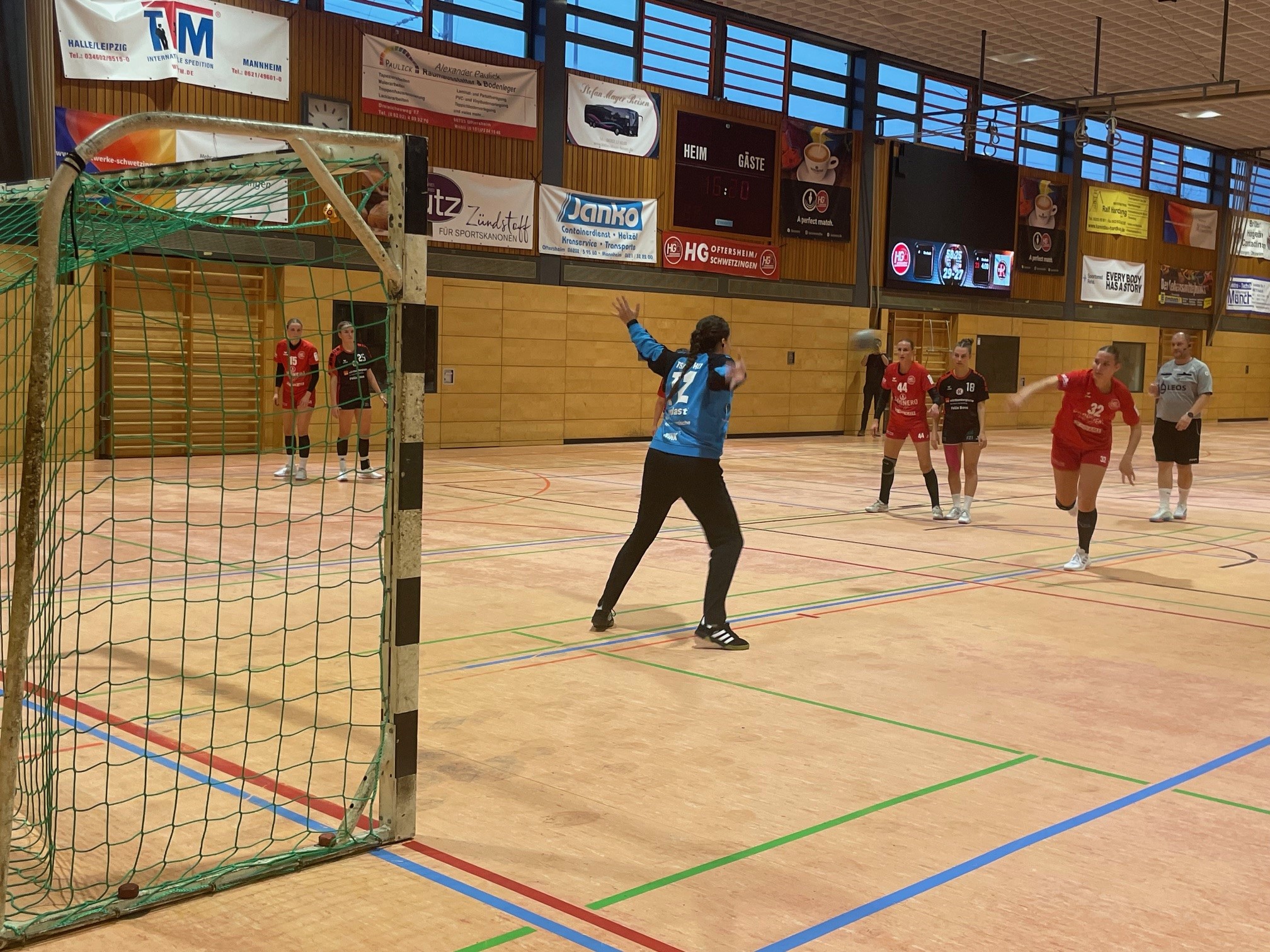 Eine Szene gegen Ende (59.), die Partie war eigentlich entschieden, führte dann zum Ausschluss von Rintheims Spielerin Sanja Oser. In einer Umschaltsituation springt Jasmin Jung bei neun Metern auf halblinks ein. „Oser greift ihr von hinten in den Wurfarm“, schildert der HG-Coach. „Das hätte schlimm ausgehen können, also rote Karte. Die disqualifizierte Spielerin sagte dann noch sehr laut zu Jung, ,dann darfst kein Handball spielen´, was auch die Schiedsrichter hörten.“ Dies verdoppelte die Zeitstrafe für Rintheim, hatte aber keine Auswirkungen mehr.
