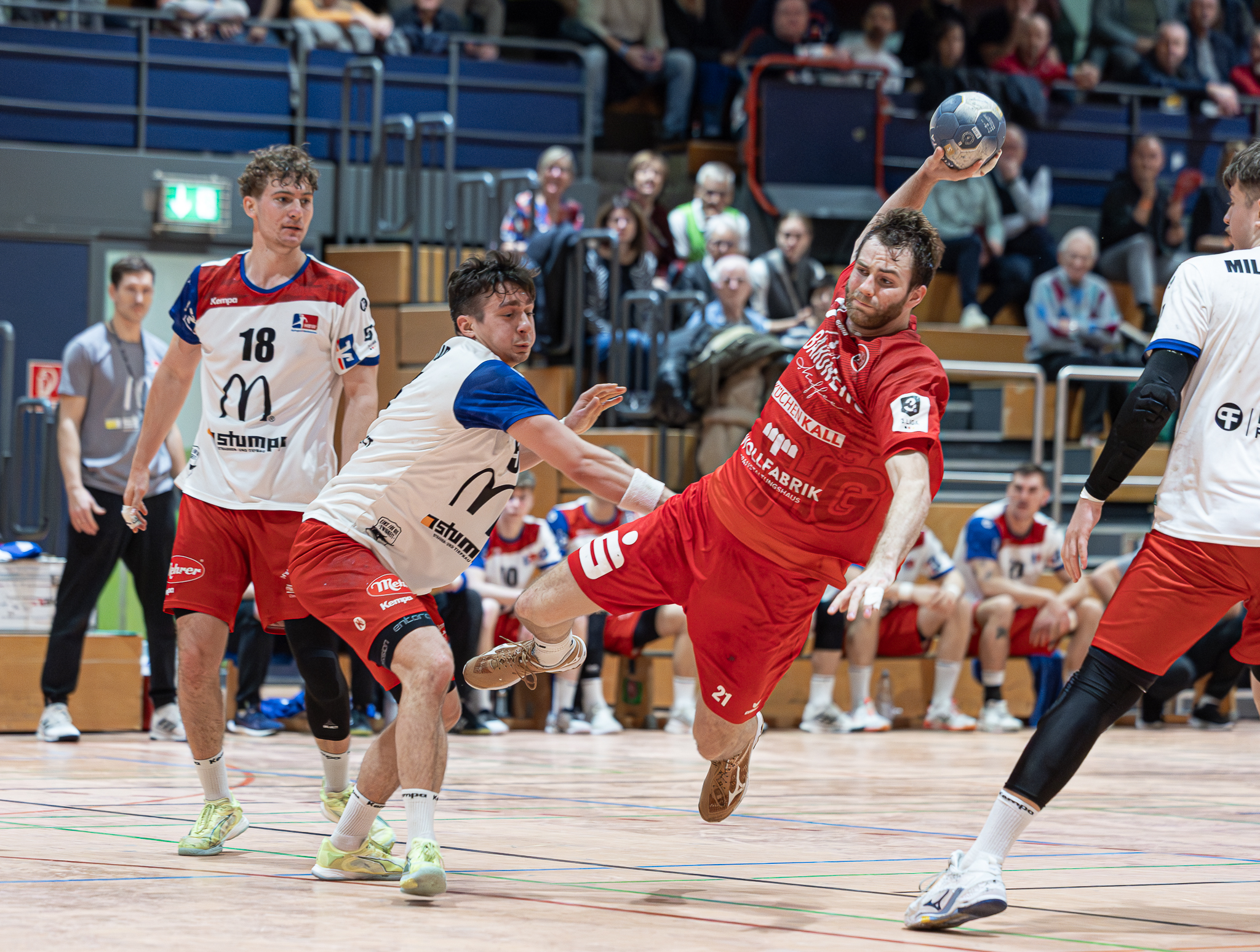 Die Heimmannschaft muss dabei wahrscheinlich auf Florian Burmeister (Bild oben) verzichten. Nach 38 Minuten beim Match in Leutershausen letzten Samstag hatte der Halblinke gerade das 18:17 auf der Hand. Der Wurf wurde aber von S³L-Keeper Lukas Luba pariert. In der Abwehr versuchte er vergeblich, Sven Schreiber zu blocken, wurde dabei unterlaufen, kam mit dem linken Fuß unglücklich auf. Inzwischen stellte sich heraus, dass er im Sprunggelenk eine Bänderverletzung erlitt. Kurz darauf rückte dann auch das Sanitätspersonal an und kümmerte sich um Burmeister in den Leutershausener Katakomben. Auch wenn dieser Ausfall einen gewissen Bruch in dem intensiv umkämpften Spiel verursachte, hielt sich die HG wacker, kreierte geleitet von Sinan Antritter Chancen und nutzte sie bis zum 21:19. Doch eine Zeitstrafe kombiniert mit zwei Fehlwürfen sowie einem misslungenen Pass und schon war es um die Punkteaussichten der HG geschehen.