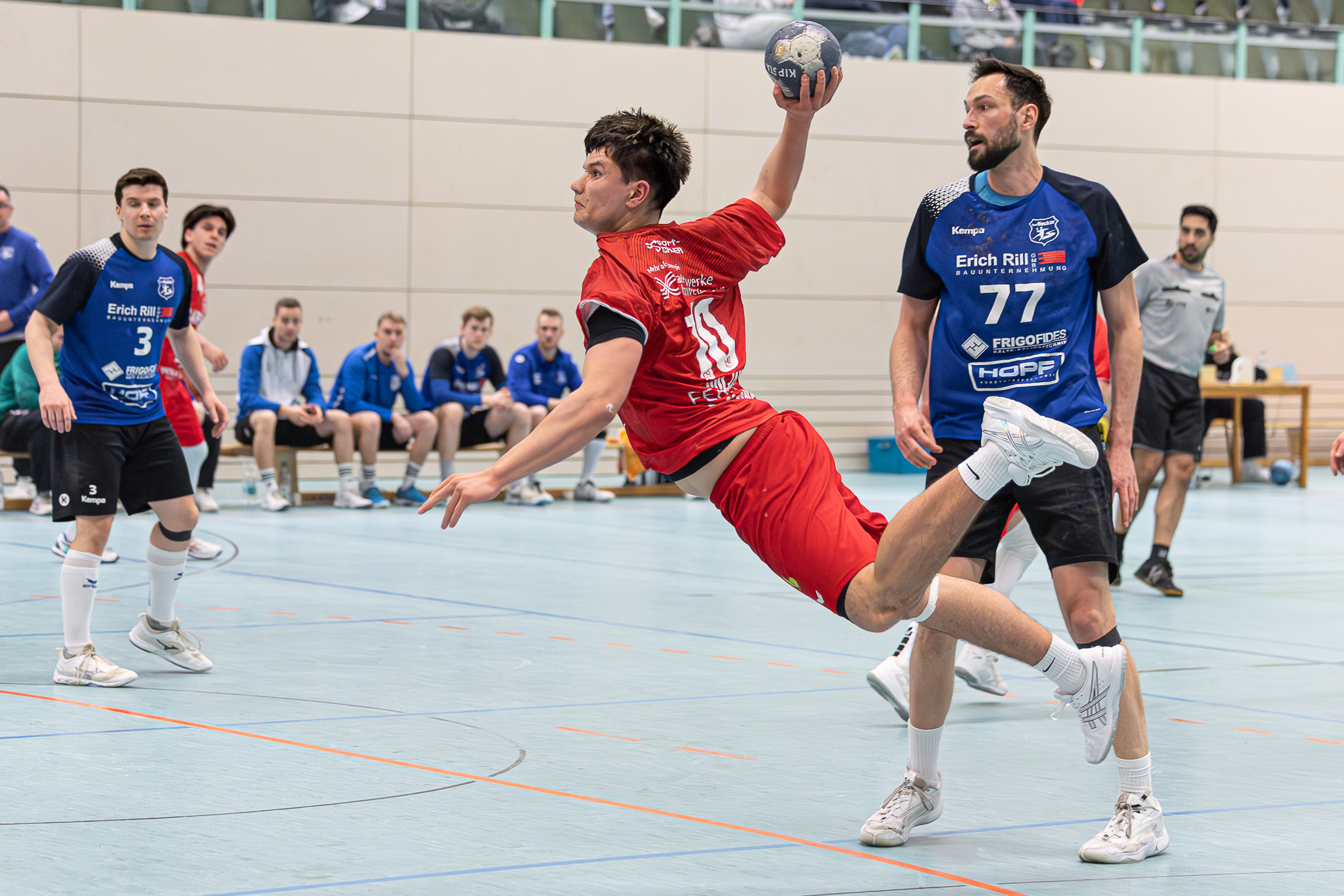 Dann aber recht erfolgreich. Mit einem Hammer waagrecht in der Luft liegend pfefferte Kreisläufer Valentin Huljak die Harzkugel zum umjubelten Ausgleich in die Maschen (21:21/44.). Seine Kollegen bauten dann langsam eine kleine Führung auf, die nicht mehr abgegeben wurde. Übel dann noch ein komplett überflüssiges Foul der Marke Frust wieder auf Linksaußen im Schnellangriff gegen David Huljak beim Schlusspfiff, welches ebenfalls mit Rot geahndet wurde.