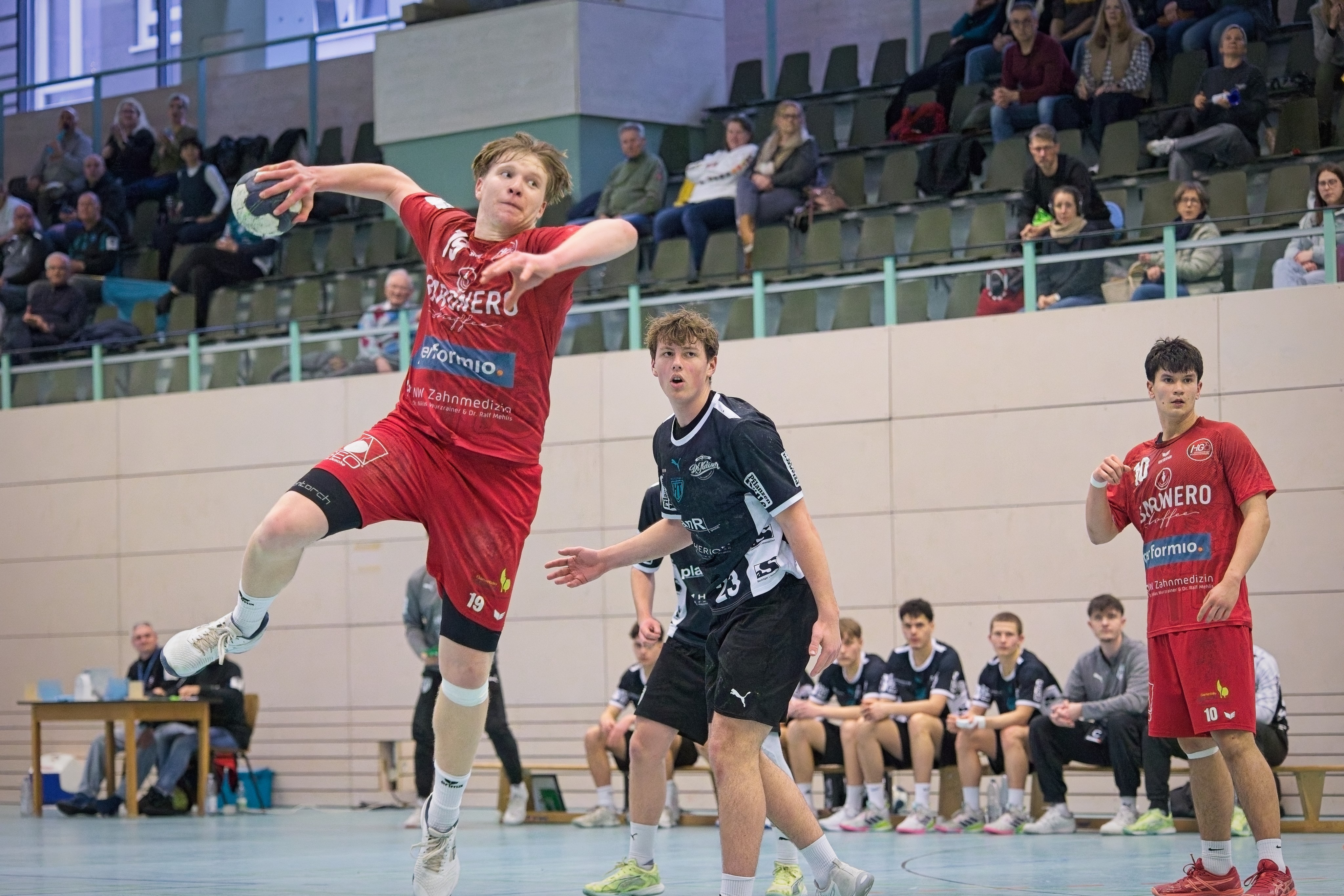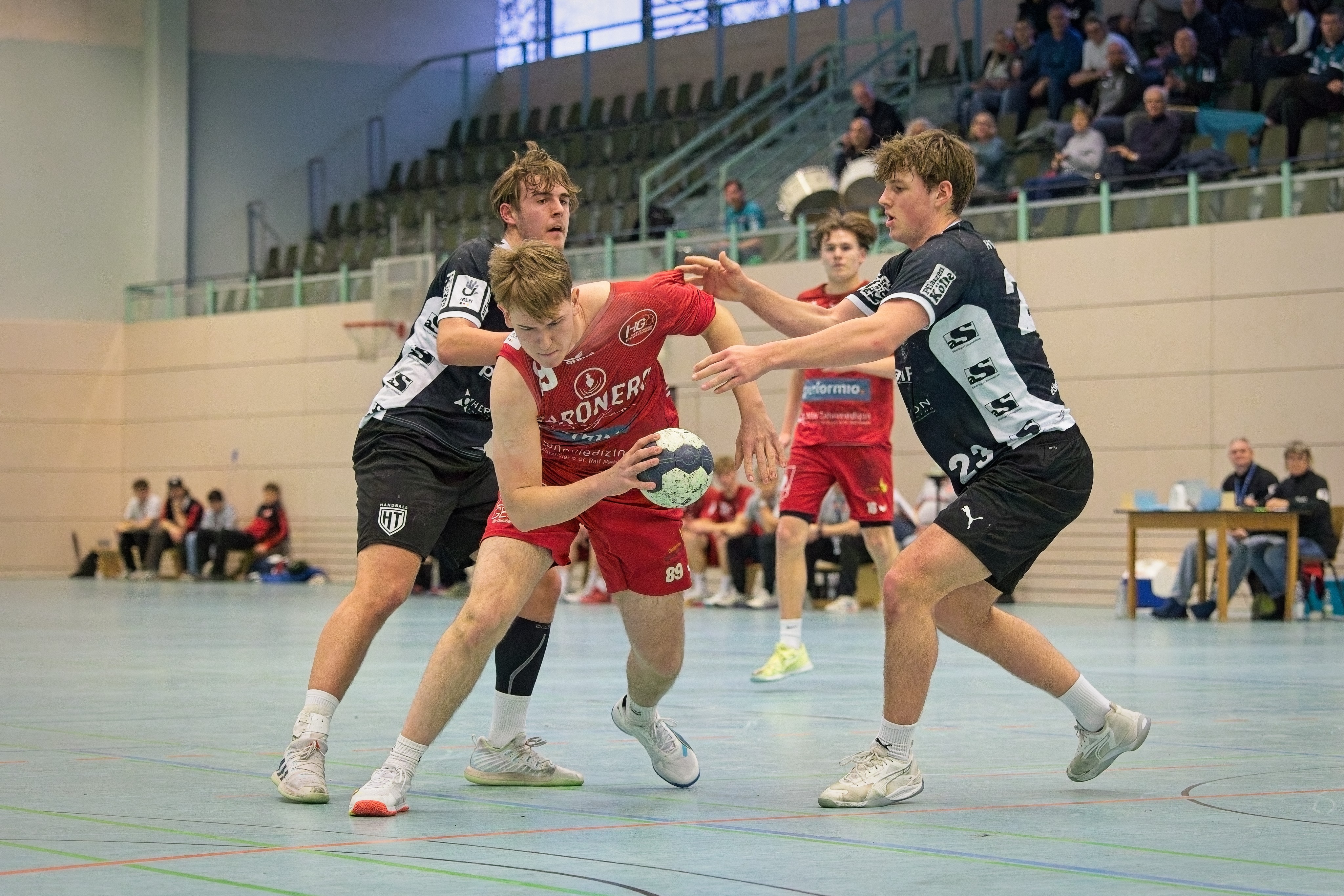 Dabei bezog er sich auf eine gewisse Phase bis zur Pause. Zuvor hatte sei Team zwar nicht gerade brilliert, war aber mit den etwas offensiv deckenden Gästen quasi gleichauf. HTM wurde meist dann in Bedrängnis gebracht, wenn die Oftersheim/Schwetzinger per Tempo das gegnerische Tor bestürmten, so wie bis zum 6:5 oder stellenweise in der zweiten Halbzeit.